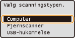 Sekvensen med at "scanne et dokument og gemme det på en computer" kan kun udføres, når der scannes på maskinen. Du skal gennemføre nogle procedurer, inden du kan bruge denne funktion.