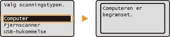 Når afkrydsningsfeltet [Scan] markeres, deaktiveres scanning af dokumenter til USB-hukommelsesenheder. Du kan også deaktivere scanning af dokumenter til computere via <Computer> og <Fjernscanner>. Du kan dog kun deaktivere scanning af dokumenter til computere for alle afdelings-id'er. (Blokering af job, når afdelings-id'et er ukendt).