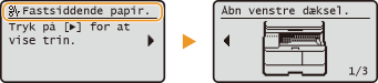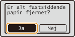 Hvis der er papirstop, vises <Fastsiddende papir.> på skærmen. Tryk på