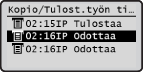 Näyttää valitun kohteen nykyisen tilan. Alla näytetään esimerkkinä <Kopio/Tulost.työn tila>-näyttö.