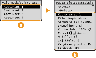 Valitse <Asetukset 1> kohtaan <Asetukset 4>
