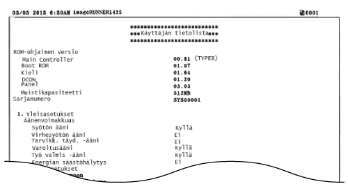 Tämä lista ei sisällä asetustietoja kohdista <Verkkoasetukset> ja <Järjestelmän hallinta-asetukset>. Tarkistaaksesi kaikki asetusnimikkeet, tulosta Järjestelmänvalvojan tietolista.