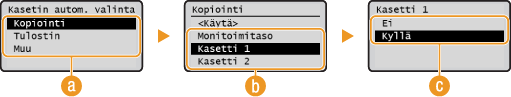 <Kasetin automaattinen valinta Kyllä/Ei>