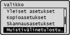 Asteriskit (*)Asteriskilla (*) merkityt asetukset ovat käytettävissä vain, kun lisävarusteena saatava paperikasetti (kasetti 2) on asennettu.