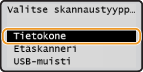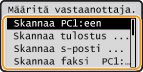 Valitse vastaanottaja tai skannauksen tyyppi ja paina