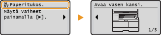. Jos näytön ohjeita on vaikea ymmärtää, katso seuraavista osista, miten tukokset poistetaan. Lue huolellisesti ohjeet kohdassa