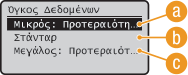 Μπορείτε να καθορίσετε τον λόγο συμπίεσης που εφαρμόζεται κατά τη σάρωση εγγράφων στην καθορισμένη μορφή αρχείου (Επιλογή Μορφής Αρχείου). Με τη ρύθμιση <Μικρός: Προτεραιότητα Μνήμης> ο λόγος συμπίεσης είναι μεγαλύτερος από τον τυπικό, για τη δημιουργία μικρότερων αρχείων με χαμηλότερη ποιότητα εικόνας. Από την άλλη, με τη ρύθμιση <Μεγάλος: Προτεραιότητα Ποιότητας Εικόνας> ο λόγος συμπίεσης είναι μικρότερος από τον τυπικό για μεγαλύτερα αρχεία με υψηλότερη ποιότητα εικόνας.
