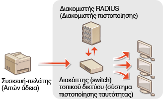 Η συσκευή μπορεί να συνδεθεί σε δίκτυο 802.1X ως συσκευή-πελάτης. Ένα τυπικό δίκτυο 802.1X αποτελείται από έναν διακομιστή RADIUS (διακομιστής πιστοποίησης), διακόπτη δικτύου (μονάδα πιστοποίησης) και συσκευές-πελάτες με λογισμικό πιστοποίησης (αιτούντες άδεια πρόσβασης). Εάν μια συσκευή προσπαθήσει να συνδεθεί στο δίκτυο 802.1X, πρέπει να περάσει από πιστοποίηση χρήστη προκειμένου να αποδειχθεί ότι η σύνδεση πραγματοποιήθηκε από εξουσιοδοτημένο χρήστη. Οι πληροφορίες πιστοποίησης αποστέλλονται σε και ελέγχονται από έναν διακομιστή RADIUS, ο οποίος επιτρέπει ή απορρίπτει την επικοινωνία με το δίκτυο ανάλογα με τα αποτελέσματα της πιστοποίησης. Εάν αποτύχει η πιστοποίηση, ένας διακόπτης (switch) του δικτύου μπλοκάρει την πρόσβαση από συσκευές εκτός του δικτύου.