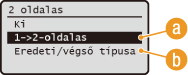 (2-oldalas/ID kártya-másolás) <2 oldalas> lenyomásával a <2 oldalas> alábbi leírás szerinti választása helyett. |