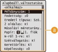 Válassza ki a beállítandó elemet, majd módosítsa az alapértelmezett értéket.