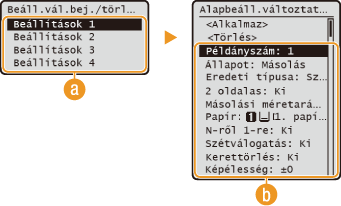 Válasszon <Beállítások 1> és <Beállítások 4> közül