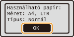 Ellenőrizze, hogy a megjelenített papírméret és -típus egyezik-e a készülékbe behelyezett papíréval, és nyomja meg az