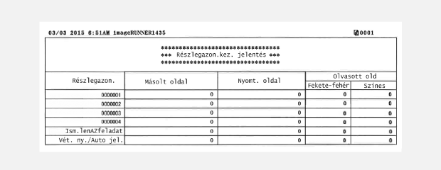 Ha azonosítók kezelése engedélyezve van, részlegazonosítónként ellenőrizheti a másolt, nyomtatott, és beolvasott oldalak számát az erről nyomtatható jelentésben. A jelentéssel megfigyelheti a használat módját, így ennek alapján intézkedhet.