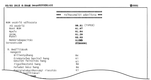 Ebben a listában nincsenek benne a <Hálózati beállítások> és a <Rendszerkezelő beállítások> adatai. Az összes beállítási tétel ellenőrzéséhez nyomtassa a Rendszerkezelő adatok listáját.