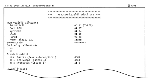 A beállításokat tartalmazó menü) és a készülék érvényben lévő beállításait, pl. papírméret és papírtípus. Ellenőrizheti a <Hálózati beállítások> és <Rendszerkezelő beállítások> értékeit is, mint a Felhasználói adatlista részét (