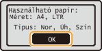 Ellenőrizze, hogy a megjelenített papírméret és -típus egyezik-e a készülékbe behelyezett papíréval, és nyomja meg az