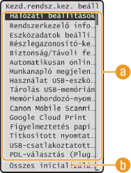 A <Hálózati beállítások> a következőképpen is alaphelyzetbe állíthatók: nyomja meg a