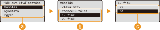 ). Amikor többcélú tálcába helyezett papírra nyomtat, akkor mindig engedélyezve van az automatikus fiókválasztás.