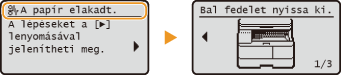gombot egyszerű megoldások megjelenítéséhez a kijelzőn. Ha a kijelzőn megjelenő eljárások nehezen érthetők, az elakadások megszüntetéséhez olvassa el a következő részeket. Az elakadt papír kivétele előtt olvassa el a