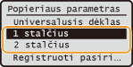Pasirinkite <1 stalčius> arba <2 stalčius> ir paspauskite