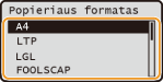 Jei rodomas toliau pavaizduotas ekranas <Popieriaus pasirinkim.> naudodami