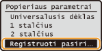 pasirinkite <Popieriaus parametrai> ir paspauskite