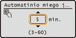 valdymo pulte. Be to, galite naudoti parametrą <Automatinio užmigdymo laikas>, kad aparatas automatiškai persijungtų į budėjimo režimą, jei nurodytą laiko tarpą jis nenaudojamas.