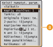 Pasirinkite norimą nustatyti parametrą ir pakeiskite numatytąją reikšmę.