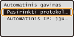 ![]() Jei rodoma <Įjungta>, pasirinkite <Automatinis gavimas>
