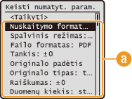 Šis aparatas būna iš anksto sukonfigūruotas naudojant numatytuosius gamyklinius parametrus (Meniu sąrašo nustatymas). Atsižvelgdami į savo poreikius galite keisti ir registruoti numatytuosius parametrus.