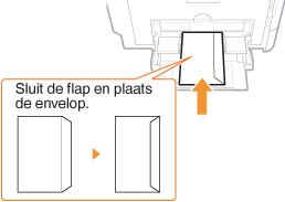 Plaats de enveloppen van het formaat Monarch, COM10, DL of ISO-C5 met de korte zijde naar voren en met de niet gelijmde kant (voorzijde) omlaag. U kunt niet afdrukken op de achterzijde van enveloppen.