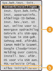 Instellingenmenu). Voor sommige instellingen moet u de machine opnieuw opstarten om de initialisatie te voltooien.