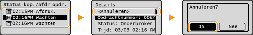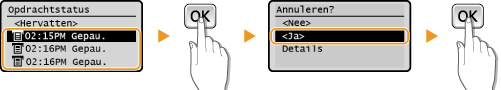 Annuleren vanuit de UI op afstandU kunt het afdrukken annuleren vanaf de pagina [Opdrachtstatus] op de UI op afstand: De huidige status van afdruktaken controleren