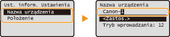 Wprowadź <Nazwa urządzenia> lub <Położenie> (Wprowadzanie tekstu)