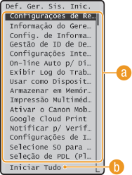 Lista dos menus de definição). Para algumas definições, é necessário reinicializar a máquina para completar a inicialização.