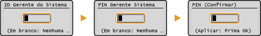 Registe a ID do administrador de sistema, uma ID destinada exclusivamente a administradores. Também pode definir um PIN para a ID do administrador de sistema. Se esta ID estiver ativada, só pode aceder a <Configurações de Rede> e <Config. de Gerenciamento do Sistema> se tiver introduzido corretamente a ID do administrador de sistema e o PIN. Por predefinição, a ID e o PIN estão ambos definidos para "7654321". Altere-os, por razões de segurança. Os dados das definições de ID do administrador de sistema são essenciais para a segurança da máquina, por isso certifique-se de que apenas os administradores têm conhecimento da ID do administrador de sistema e do PIN.