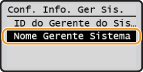 Selecione <Config. Informações do Gerente Sistema>  <ID e PIN do Gerente do Sistema>.