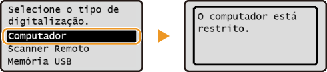 Se selecionar a caixa de verificação [Digitalização], desativa a digitalização de documentos para dispositivos de memória USB. Também pode desativar a digitalização de documentos para computadores através de <Computador> e <Scanner Remoto>. No entanto, só pode desativar a digitalização de documentos para computadores para todas as ID de departamento. (Bloquear trabalhos se a ID de departamento for desconhecida).