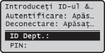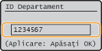 / pentru a selecta <ID Dept.> (sau <ID administrator>) şi apăsaţi . |