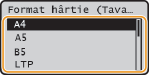 pentru a selecta formatul de hârtie şi apăsaţi