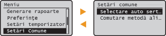 Puteţi modifica mai multe setări cu privire la afişaj, precum viteza de derulare sau limba de afişare: