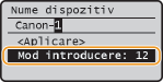 pentru a schimba tipul de text care va fi introdus. Tipul de text selectat este indicat ca <Mod de intrare: A>. Puteţi selecta din trei tipuri : <A> (Majusculă) , <a> (literă mică) sau <12> (cifre).