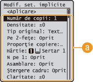 Selectaţi articolul pe care doriţi să îl setaţi şi modificaţi valoarea implicită.