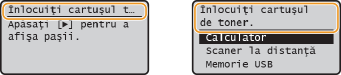 <Înloc. cartuş toner.>/<Înlocuiţi cartuşul de toner.>