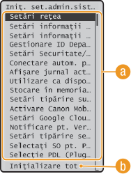 Lista de meniuri de setări). Pentru anumite setări, trebuie să reporniţi aparatul pentru a finaliza iniţializarea.