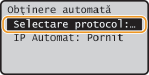 şi setaţi ambele <Selectare protocol> şi <IP Automat> la <Oprit>. |