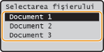 Dacă în memorie sunt documente securizate de la doi sau mai mulţi utilizatori, ecranul <Selectare utilizator> este afişat înaintea ecranului <Selectare fişier>. Folosiţi