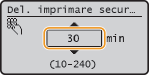 În momentul achiziţionării aparatului, acesta este setat să şteargă documentele securizate după 30 de minute după ce sunt recepţionate, dacă nu sunt imprimate, dar puteţi modifica această setare.