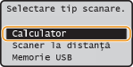 Selectaţi tipul destinaţiei sau tipul de scanare şi apăsaţi