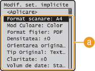 . Dacă înregistraţi setările folosite frecvent ca setări implicite, puteţi elimina nevoia de a configura aceleaşi setări de fiecare dată când scanaţi documente.|